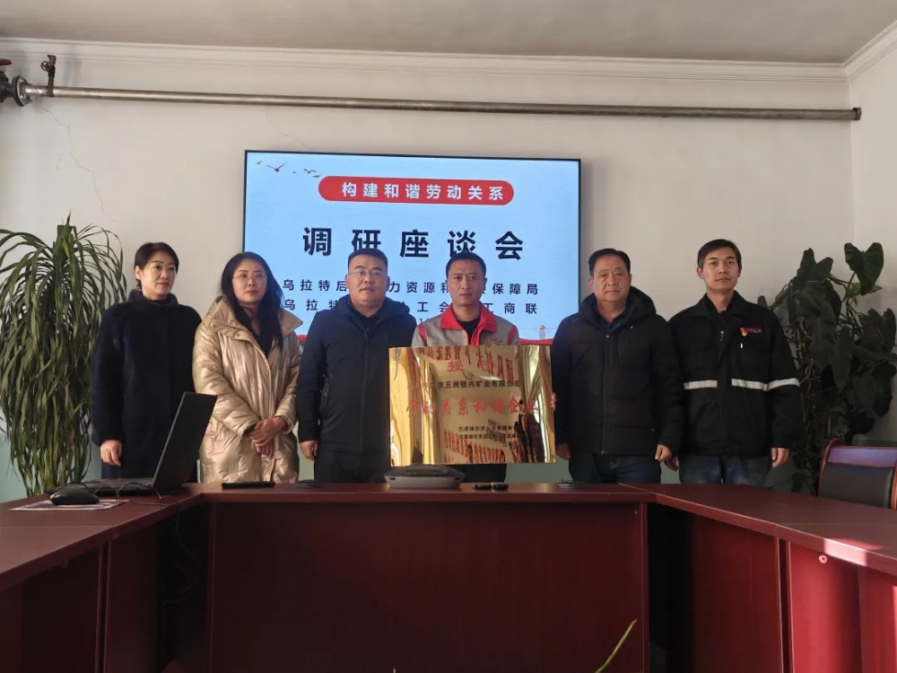 12月25日,烏拉特后旗人社局黨委書記、局長(zhǎng)敖日格樂,總工會(huì)副主席潘瑩,工商聯(lián)副主席馬述敏等一行人到訪,在公司二樓會(huì)議室開展座談會(huì)并進(jìn)行“勞動(dòng)關(guān)系和諧企業(yè)”授牌儀式,公司黨支部副書記、經(jīng)理史小亮,職能部室人員參加座談會(huì)。