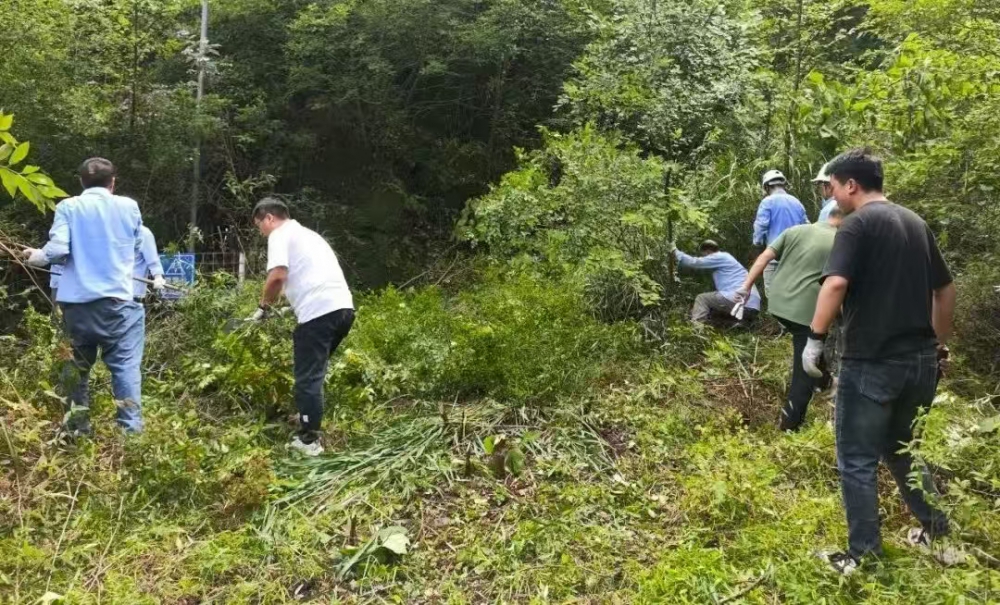 因長期停用,炸藥庫周邊雜草叢生、灌木密布,部分區(qū)域雜草高達(dá)兩米,不僅影響安全巡查,還存在多種風(fēng)險(xiǎn)?,F(xiàn)場,職工們手持割草機(jī)、鐮刀、鐵鍬等工具,分工協(xié)作:年輕職工主動承擔(dān)割草、砍伐重任,老員工則負(fù)責(zé)理碎石、搬運(yùn)雜物,黨員先鋒們更是一馬當(dāng)先,帶頭攻堅(jiān)復(fù)雜區(qū)域。盡管汗水浸透工裝,雙手磨出水泡,但無人喊苦叫累,展現(xiàn)出強(qiáng)大的團(tuán)隊(duì)凝聚力。
