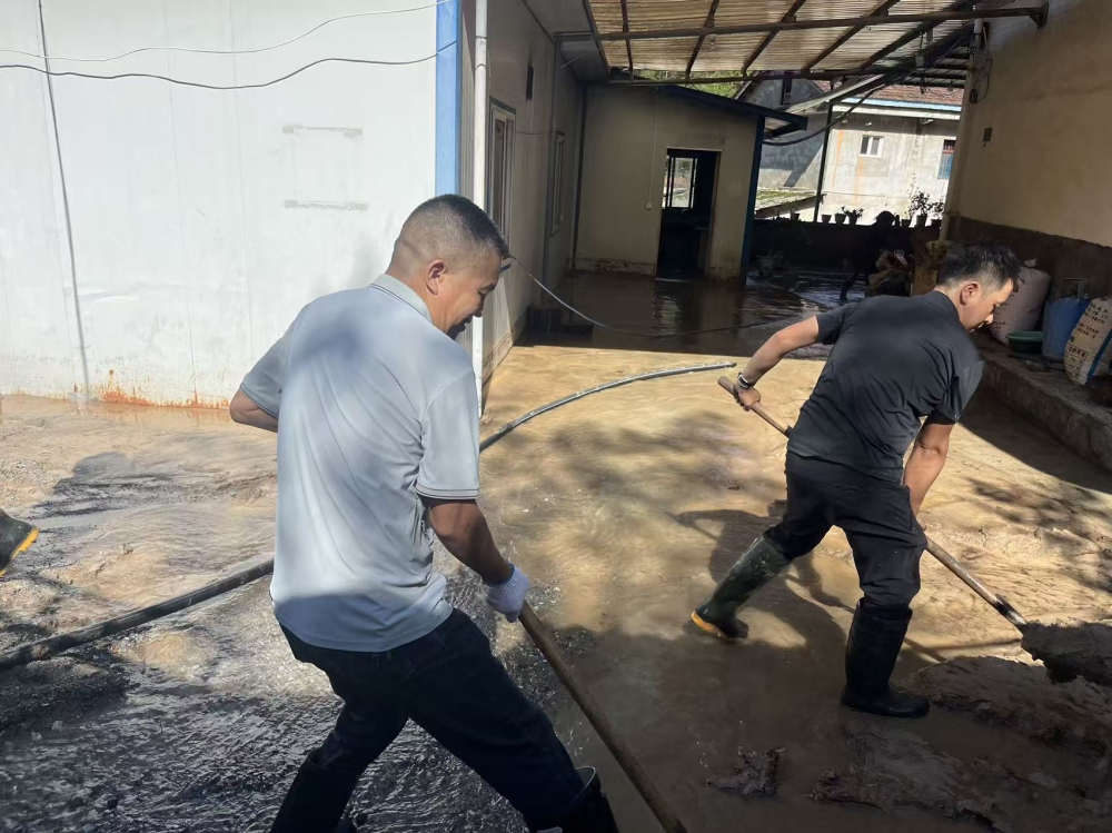 在組織自救的同時,公司黨委心系周邊群眾,迅速組建“黨員志愿服務(wù)隊”,奔赴受災(zāi)農(nóng)戶家中開展幫扶。志愿者們幫助農(nóng)戶清理院落內(nèi)的積水和淤泥,并耐心安撫農(nóng)戶情緒,詳細了解他們的需求,用暖心服務(wù)為受災(zāi)群眾撐起“保護傘”。