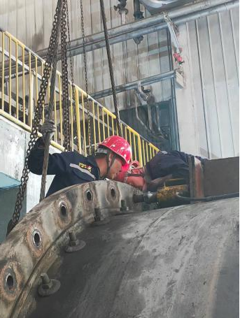 檢修期間,技術(shù)人員全程現(xiàn)場(chǎng)駐點(diǎn)指導(dǎo)與監(jiān)督。從舊端蓋的拆卸、接觸面的精細(xì)打磨處理,到新端蓋的精準(zhǔn)起吊定位以及最終的密封性能測(cè)試,每一道工序均嚴(yán)格遵循既定工藝標(biāo)準(zhǔn)和質(zhì)量要求。面對(duì)端蓋重量大、安裝空間受限等技術(shù)難題,檢修團(tuán)隊(duì)迎難而上,憑借專(zhuān)業(yè)的吊裝設(shè)備和精湛的操作技能,平穩(wěn)高效地完成了舊端蓋拆除與新端蓋安裝就位。經(jīng)過(guò)細(xì)致調(diào)整連接螺栓的緊固力矩,確保了端蓋與筒體之間達(dá)到卓越的密封效果。安全監(jiān)督人員全程旁站監(jiān)護(hù),對(duì)吊裝作業(yè)、動(dòng)火作業(yè)、臨時(shí)用電等關(guān)鍵環(huán)節(jié)實(shí)施嚴(yán)格安全管控,有力保障了整個(gè)施工過(guò)程的安全零事故。通過(guò)全體參檢人員的協(xié)同攻堅(jiān),端蓋更換任務(wù)較原計(jì)劃提前17小時(shí)圓滿完成。
