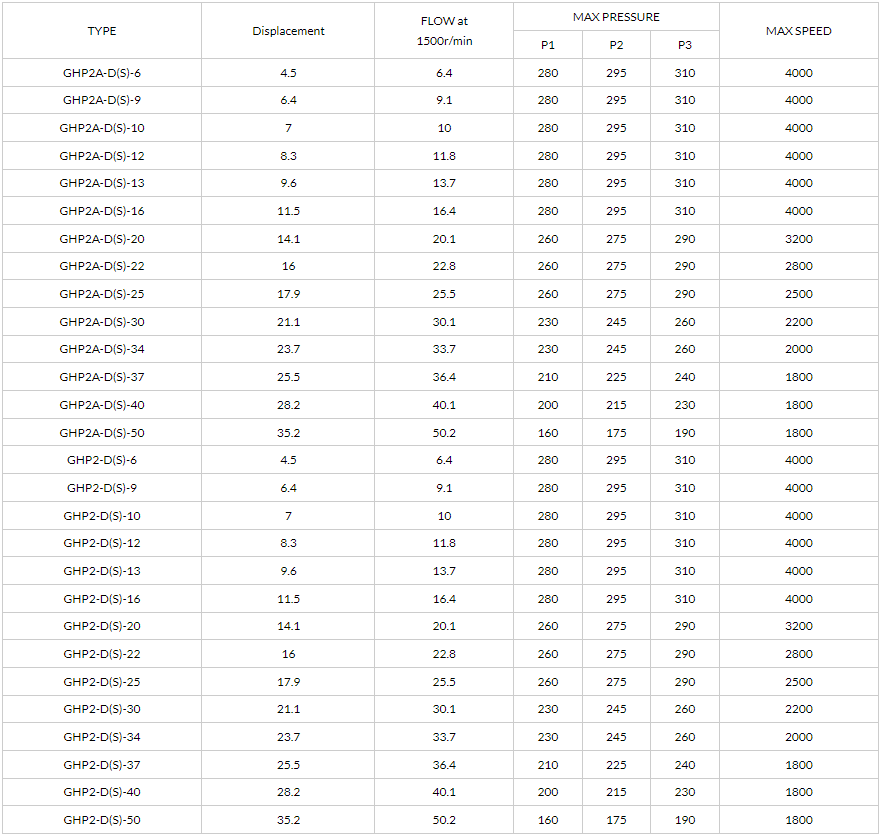 第一級(jí),低排量,高壓:1.1 cc/rev 至 3.2 cc/rev;P1 在 230 巴